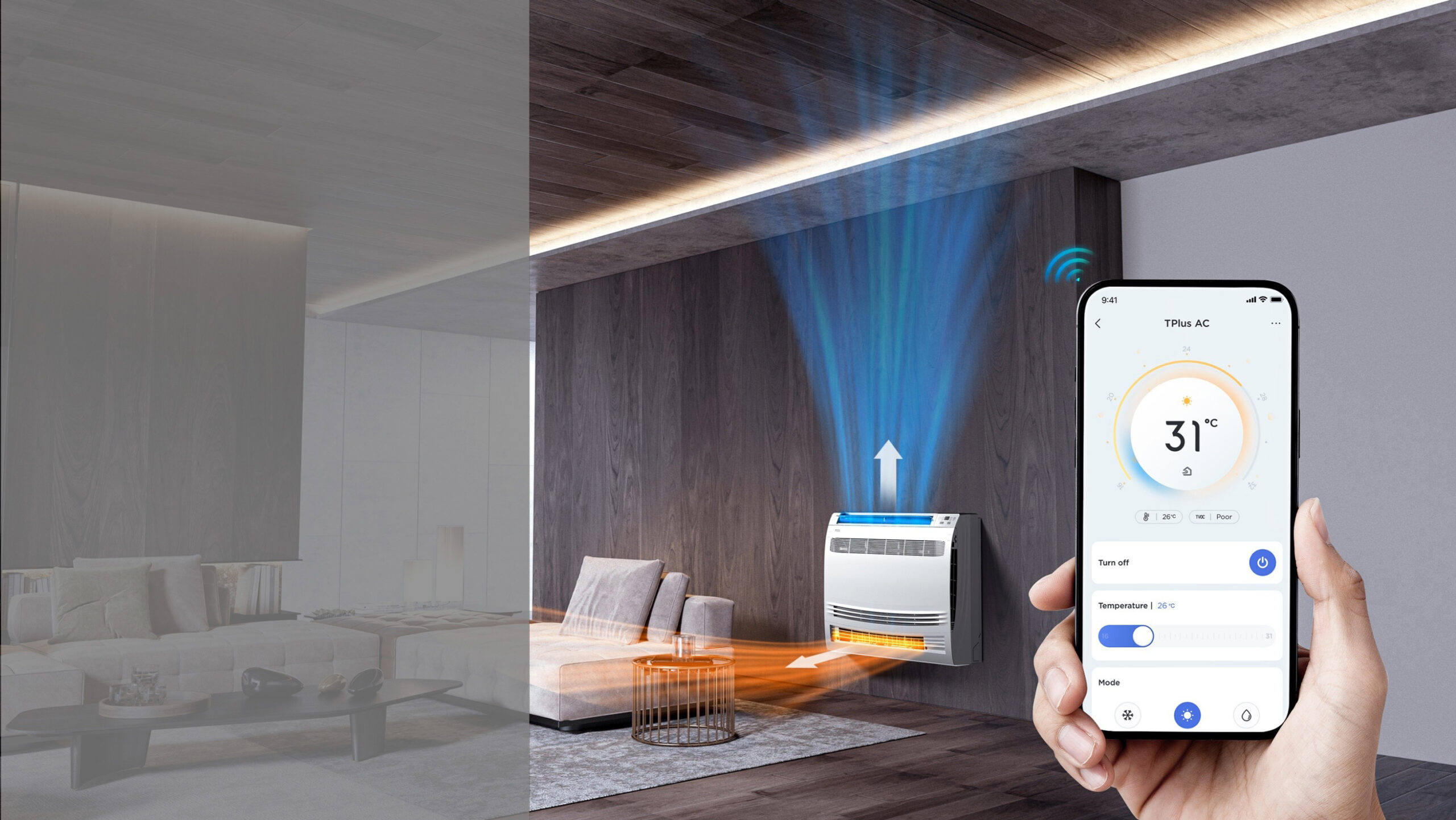 Konsoolkonditsioneer sobib suurepäraselt korteri, maja või muude väikeste ruumide kütmiseks ja jahutamiseks. Tänu inverterkompressorile tagab mudel kõrge energiatõhususe ja seatud temperatuuri täpse hoidmise. Välisseade on varustatud kaubaaluse soojendusega. IoT Wi-Fi juhtimine ühe TCL HOME rakendusega.